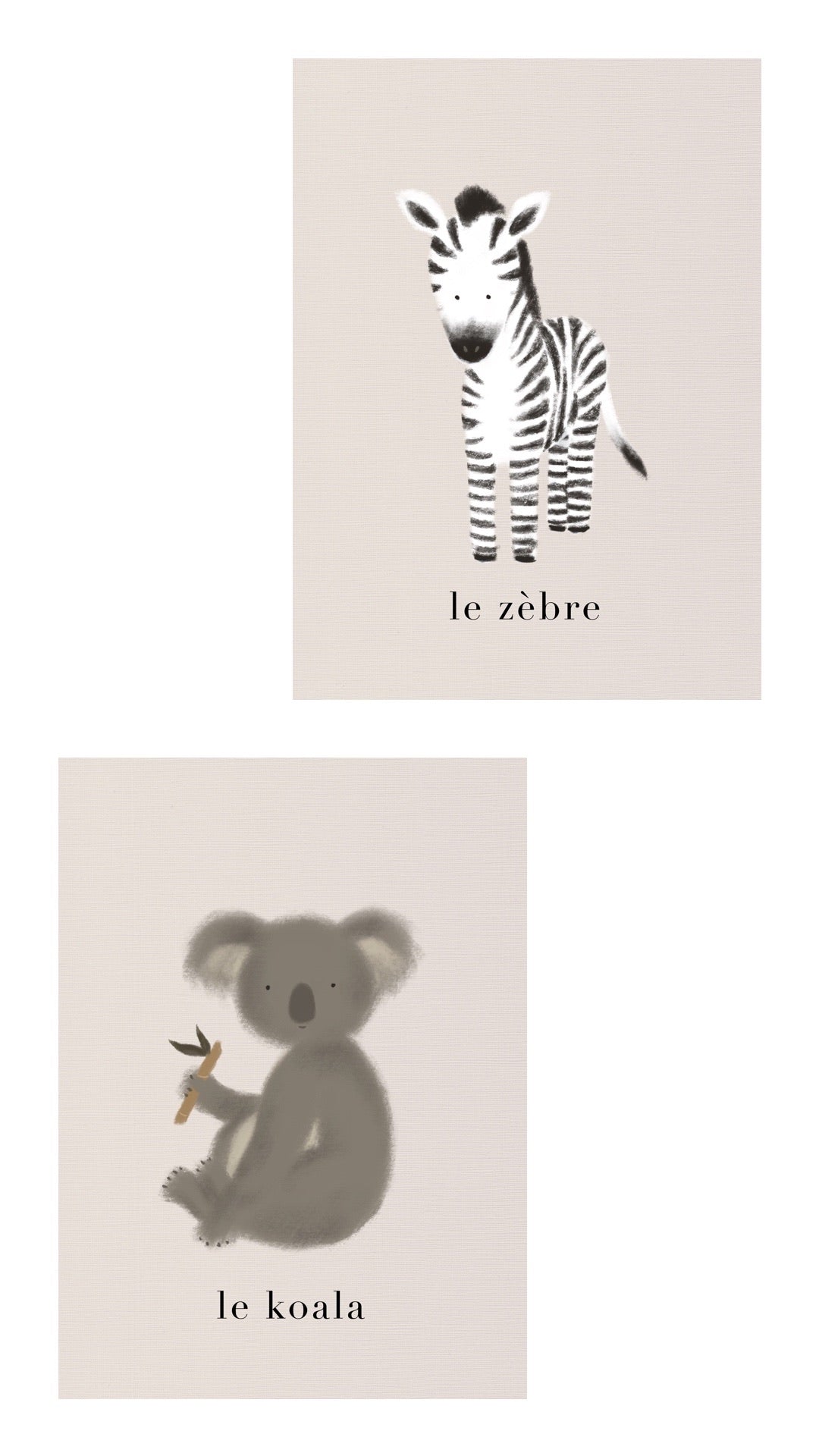 Introduce children to the animal kingdom with this delightful set of 30 illustrated animal cards by Canadian artist Natasha Prévost. Perfect for learning, play, and nursery decoration.