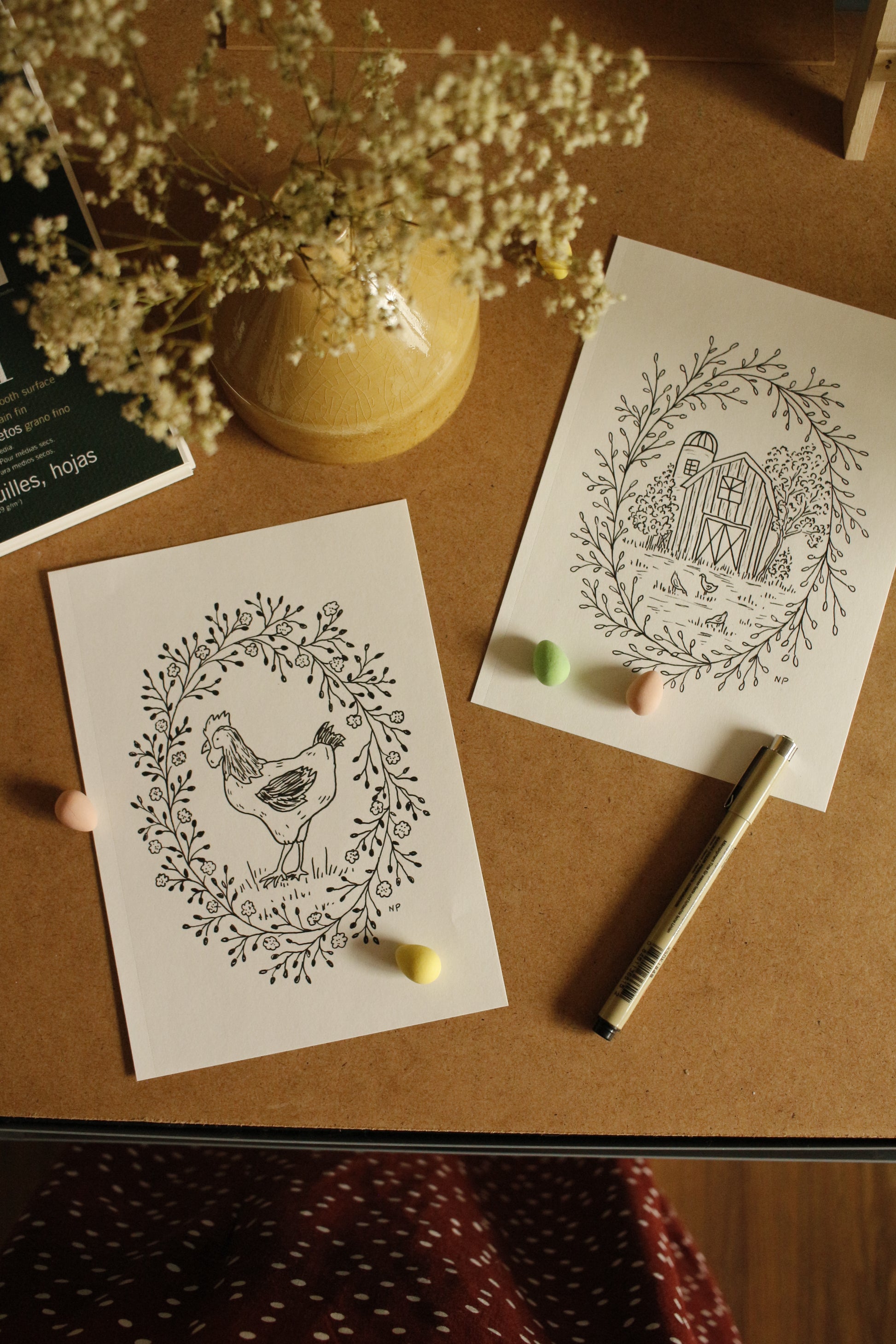 Illustration Natasha Prévost imprimée sur papier texturé.